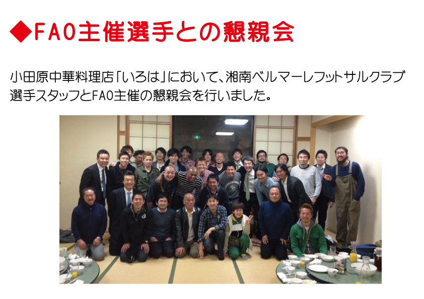 内容:小田原中華料理店「いろは」において、湘南ベルマーレフットサルクラブ